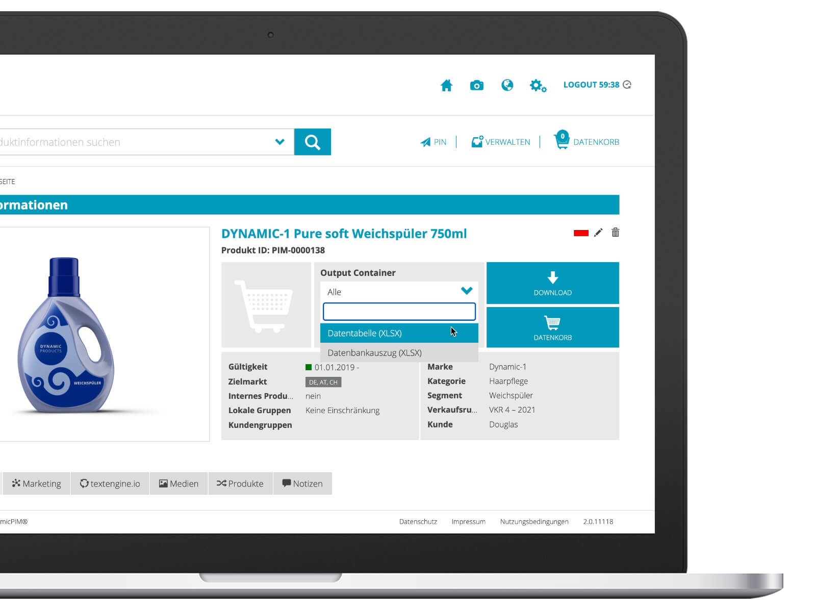 Die Output Container können kundenspezifisch z.B. Excel-Dateien zum Download anbieten, die exakt so aufgebaut sind, wie sie der jeweilige Kunde benötigt. Ebenfalls mit Berechtigungslogik.